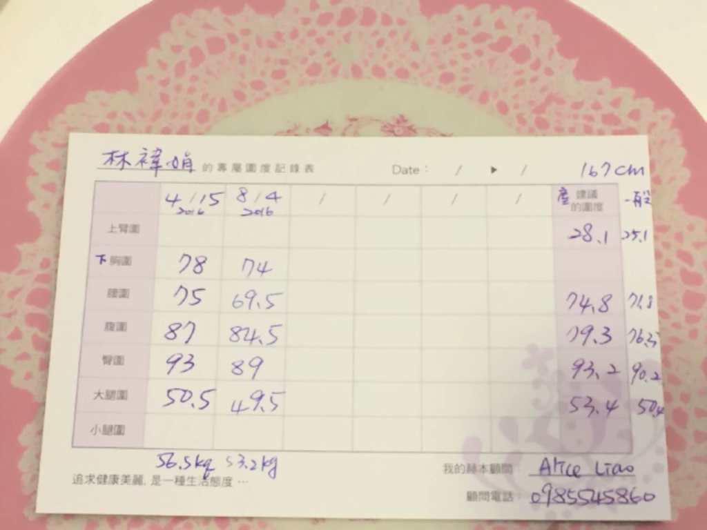 然後這是顧問幫我紀錄的數據,是比我自己量更準確一點啦!